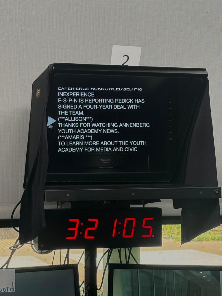 ”Thanks for watching Annenberg Youth Academy News!” Seeing these final words on the teleprompter, made me feel so accomplished. I was taught persistence, commitment, and patience throughout the production process, especially because it took more than one time to film. The journey of being an anchor was more than I could ever have imagined, I can’t wait for a lifetime filled of broadcast journalism.